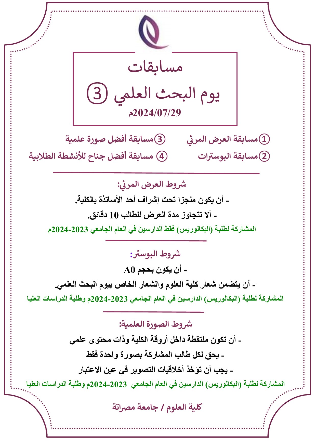 حدث يستمر ليوم كامل تُستعرض من خلاله بحوث الطلبة التي أُنجزت خلال مسيرتهم...